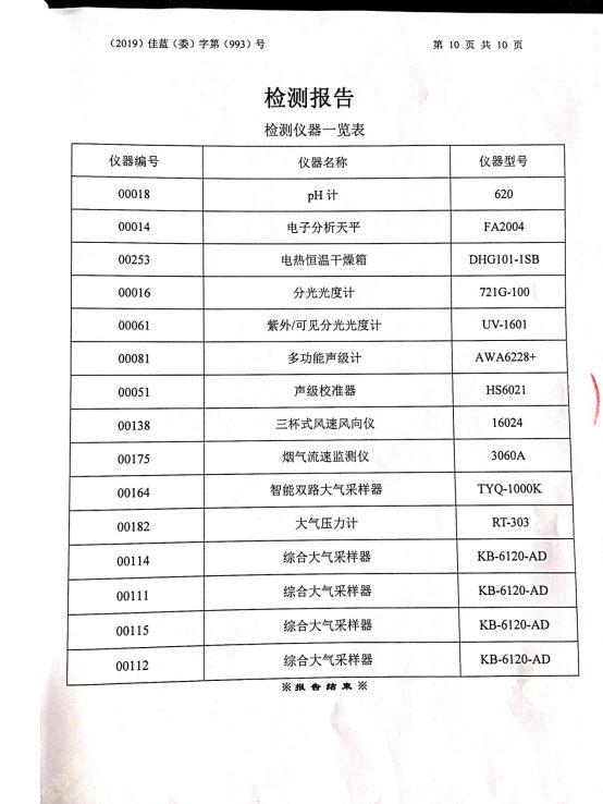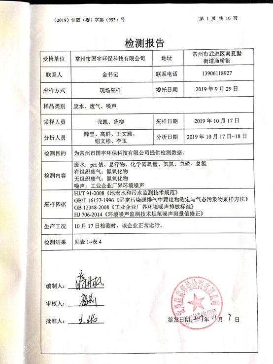 2019年下半年廢水、廢氣、噪聲檢測報告
